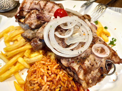 Ein kleiner Hinweis: Uns wurde leider nicht gesagt, dass zu jedem Hauptgericht eine Beilage gewählt werden kann, aber auf Nachfrage wurde das schnell geklärt. Die Pommes waren für meinen Geschmack etwas zu weich, aber alles andere – insbesondere der Grillteller – war sehr lecker!