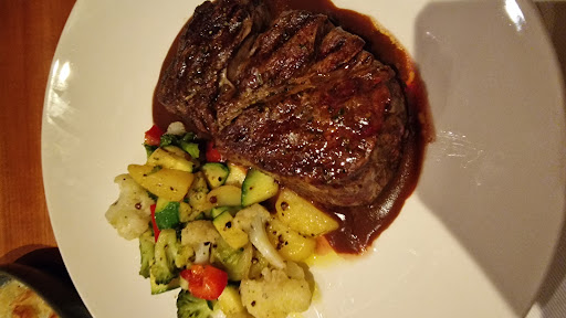 Wir haben uns für das Tagesgericht (Entrecote) und Carree vom Weidelamm entschiedenen. Als Vorspeise gab es eine Linsensuppe.