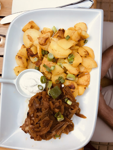 Doch weiter. Die Lebkuchensoße war lecker, das Blaukraut durchschnittlich, der Kloß unterirdisch. Erkennbar selbstgemacht (grundsätzlich sehr lobenswert), jedoch nicht ganz durch und deutlich zu weich, auf dem Teller verlaufend und mehr Brei als Kloß. Hinzu kommt, dass der Service eher studentisch unaufmerksam ist, der Weißwein deutlich zu warm war und die Beschwerde zum Essen mäßig interessiert und insbesondere folgenlos (!) entgegengenommen wurde.
