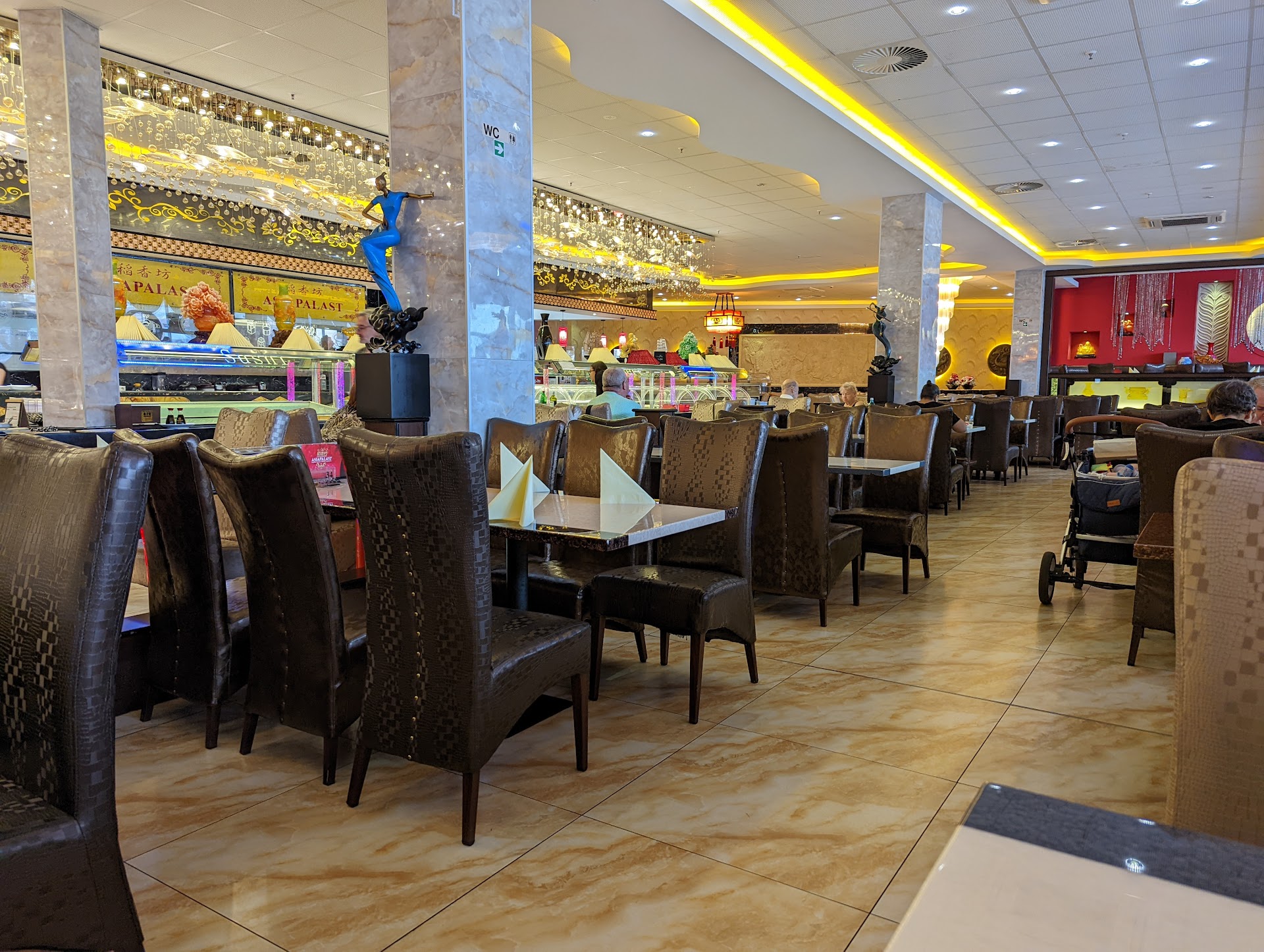 Read moreWir waren gestern da, das erste und definitiv das letzte mal. Schlechte Parksituation: Zunächst der Inhaber kann zwar nichts dafür, dass es keinen Parkplatz außerhalb gibt, aber könnte den Parkplatz wo Kunden zahlen wenigstens regelmäßig reinigen lassen und kontrollieren. Man kommt rein und hat noch kein Ticket gezogen kotzt ein Junge direkt da hin. Bisschen weiter stinkt es nach Urin. Es war teils überdacht und teils nicht. Wir haben uns bewusst für die nicht überdachte Ecke die eigentlich zum asia Palast gehört entschieden. Das liegt daran, dass wir Angst hatten, dass jemand unser Auto beschädigt oder nebendran sein Geschäft verrichtet. Genauso auch sind wir durch das Roland Center rumgelaufen, weil sich komische Getalten Im Parkhaus aufgehalten haben. Wir hatten Hunger und freuten uns nach langer Zeit wieder endlich draußen essen gehen zu können. Beim eintreten standen wir kurz vorne haben erst gewartet und als niemand kam liefen wir weiter. Dann kam ein Mitarbeiter angestürmt mit einem Gesichtsausdruck wie als würde ersagen wollen, na was wollt ihr. Wir sagten wir hätten angerufen und wollten vom Buffet essen. Wir hatten schon unsere Nachweise in der Hand und wollten gerade ihm zeigen, dass wir geimpft sind, da lief er weg. Er hat gar nicht danach gefragt. Im Restaurant sind sowohl Gäste als auch Personal ständig ohne Maske herumgelaufen. Wir waren knapp 3 Stunden da er hat die letzte Gruppe die rein kam nur darauf hingewiesen. Ansonsten niemanden.