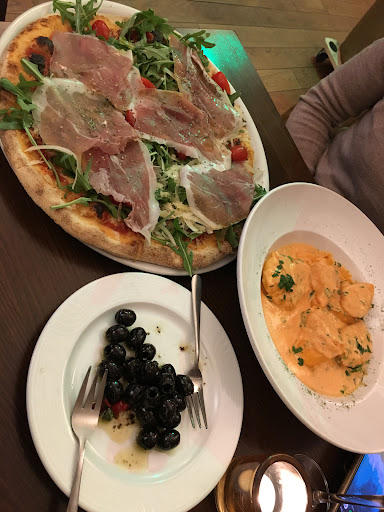 Get the fresh homemade pasta here! It's amazing. The Bruschetta was very good, too. I personally do not like the thick pizza they make. Nice outdoor seating in the summer with nice drinks. Perfect for a relaxing evening. If you only eat half your pizza don't forget to remind them a second time to bring your takeaway... I noticed at home that we never actually received ours... Got so distracted with our drinks after the food had been cleared... otherwise,...