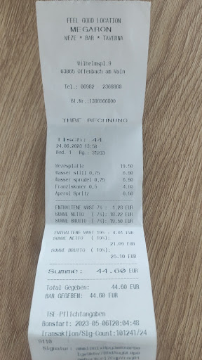 Der Taverna Grill (eigentlich: Megaron Taverna, siehe Photo) am Wilhelmsplatz in Offenbach ist ein gutbürgerliches griechisches Restaurant mit den üblichen Spezialitäten in sympathischem Ambiente mit überdachtem Außenbereich. Das Restaurant existiert schon einige Jahre, vor meinem Ortswechsel innerhalb der Stadt hatte ich dort etliche Male gegessen - gestern aber zum ersten Mal wieder seit bestimmt 3 Jahren. Geändert hat sich seit damals nichts.