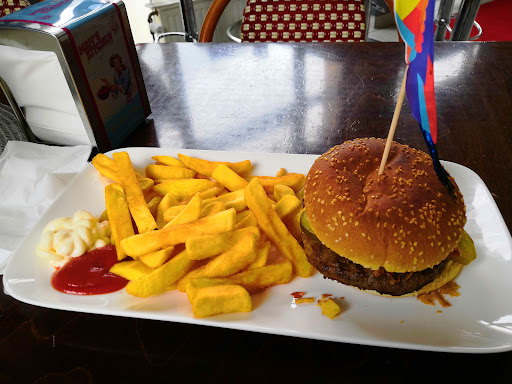 Read moreHier schmecken die Hamburger sehr gut zusätzlich ist ein riesengroßer Fernseher der abwechselnd Sport Musik und andere Sachen zeigt die Bedienung ist freundlich und hilft einen bei der Auswahl das Essen und gibt Hinweise welche Angebote zur...
