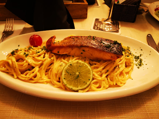 Wir zwei hatten eine gemeinsame Vorspeise (Feta überbacken mit Speck, dazu leichter Vielfalt-Salat) und danach verschiedene Fischgerichte (Steinbeißer, Dorsch), alles jenseits von "08/15" und mit Liebe zum Detail zubereitet, heiß serviert, alles frisch und echt lecker. Echte Brat!Kartoffeln, nicht die oft üblichen Gummidinger. Sehr leckere Gemüsebeilage, saftige Fischstücke. Und es gab einen kleinen Dipp mit frischem Baguette vorweg. Rose'-Wein lecker, Alsterwasser dito. Wechselnde Tagesgerichte und Deserts, große Portionen, durchaus zivile Preise.