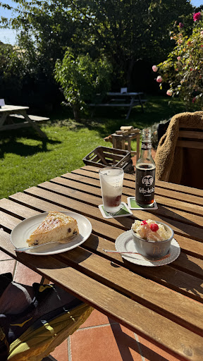 Read moreFür mich das beste Café im Ort. Ein zauberhaft gestaltetes Cafe in einem ebenso liebevoll gepflegten Garten, abseits des Strandtrubels, welches zum Verweilen und Abschalten einlädt. Der selbstgebackene Kuchen ist sehr lecker und es gibt ihn auch vegan. Ebenso die fair trade Kaffeepezialitäten bei denen für Hafemilch kein Aufschlag verlangt wird. Die Betreiberinnen sind mega nett, haben ein großes Herz für Kinder, geben gern einen Rundgang durch den Garten wo man auch Kräuter kaufen kann. Moment der "Renner" ist Feigen-Pie mit den Feigen aus dem eigenen Cafe-Garten. Sehr lecker. Der Besuch des Cafés ist ein absolutes Muss, wenn man in Großenbrode ist und dazu ein Geheimtipp, denn hier erlebt man mehr als nur "Kaffe und...