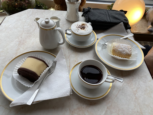 Read moreDas Essen war okay, wenn man auf viel Sahne und Marzipan steht. Leckere Cremetorten sucht man hier aber leider vergebens. Getränke (Tee und Kaffeesorten) waren geschmacklich auch in Ordnung. Die Toiletten rufen laut nach einer Renovierung. Auch der Rest darf gerne erneuert werden. Sieht alles aus, als wäre die letzte Renovierung Anfang der 80er gewesen. Die Preise sind für das gebotene viel zu hoch. Einige der Kunden vor uns beschwerten sich über die überzogenen Preise und falsche Preisauszeichnungen. Auch wir mussten es beim bezahlen...