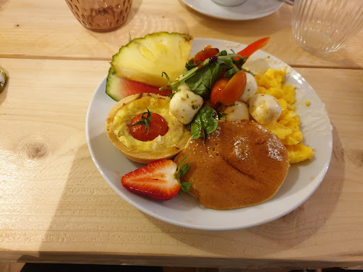 Read moreEigentlich bin ich nicht so für Instagram-taugliches Essen zu haben, aber dieses Frühstück war wunderschön angerichtet UND lecker! Wir haben gar nicht alles essen können, obwohl wir schon zu dritt dort waren. Die Auswahl war klasse, alles war frisch zubereitet worden. Das Ambiente ist sehr heimelig und gemütlich; wir haben uns gern dort aufgehalten. Auch das Service-Team war sehr freundlich und zuvorkommend. Einen Stern muss ich leider abziehen, weil es an diesem Tag keine koffeinfreien Kaffee-Alternativen gab (im Normalfall aber schon!) und weiße und dunkle Schokolade etwas lasch schmeckten (was vielleicht aber auch meiner Vorfreude auf einen koffeinfreien Latte geschuldet war). Zudem war zur Zeit wegen technischer Probleme keine Kartenzahlung möglich, was die Sache etwas umständlich gemacht hat. An manchen Tagen ist einfach der Wurm drin. Für ein gemütliches Beisammensein sehr zu empfehlen; nächstes Mal kommen wir zur Kuchenzeit -sind...