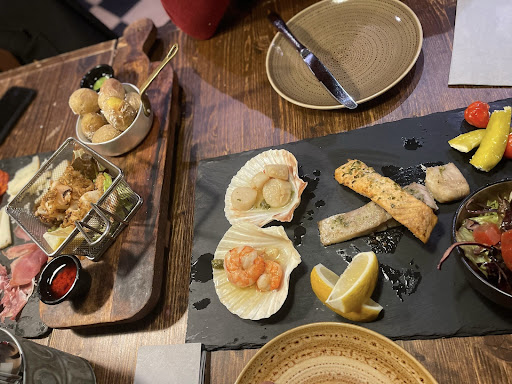 Das Essen selbst war nicht wirklich gut, seinen Preis niemals wert und MINI Portionen. Ja die Inflation trifft uns alle, aber dieser Preis dafür war frech!! Die Oliven waren die fertig geschnittenen aus der Dose (so schmeckten diese auch) die Pimientos waren extrem klein und die Dips haben schlecht geschmeckt. Eben wie Fertigware aus dem Supermarkt. Auch der Feta war kein Feta sondern Hirtenkäse. Das Brot war ebenfalls trocken. Uns allen ging es nach dem Essen nicht gut und zum Schluss fischten wir noch Haare aus dem Essen.