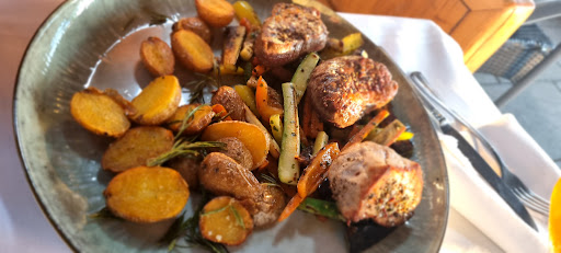 Read moreEin wirklich schönes Restaurant für einen unbeschwerten Abend, aufmerksamer Service und eine Tageskarte wird auf einer Tafel präsentiert. Ich bestellte von der Tafel Gebr. Kabeljau mit frischem Blattspinat und Kürbispüree für 29,50.- Ich bekam dann einen Teller mit drei kleinen gebr. Kabeljau Stückchen und einer sehr kleinen Portion Spinat und dazu ein normales Kartoffelpüree. Der Fisch schmeckte frisch, aber er mochte vielleicht 130 gr. gewogen haben. Ansonsten war außer einer Orangenscheibe nichts auf dem Teller. Ich habe das Gericht auch gerade wg. dem Kürbispüree bestellt. Es war ein trauriger Teller, enttäuschend und einfallslos. Auf Nachfrage machte ich den Service auf das Püree aufmerksam, aber außer einer verlegenen Antwort kam nichts zurück. Wie schon gesagt,...