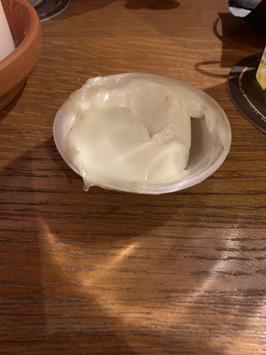 Burger und Ofenkartoffel haben ca. 40 Minuten zum Tisch gebraucht (kann auch mal sein), durch diverse Rundgänge mit Kind konnte ich aber sehen, dass unser Essen 15 Minuten fertig unter der Wärmelampe stand. Dementsprechend kam der Burger wirklich kalt, nicht einmal mehr Handwarm. Die Pommes dazu ebenso. Die Ofenlartoffel war von innen noch warm, die Sauce oben drauf war aber bereits kalt und es hatte sich eine Schicht durchs Abkühlen oben drauf gebildet. Gemüse zur Kartoffel war auch kalt.