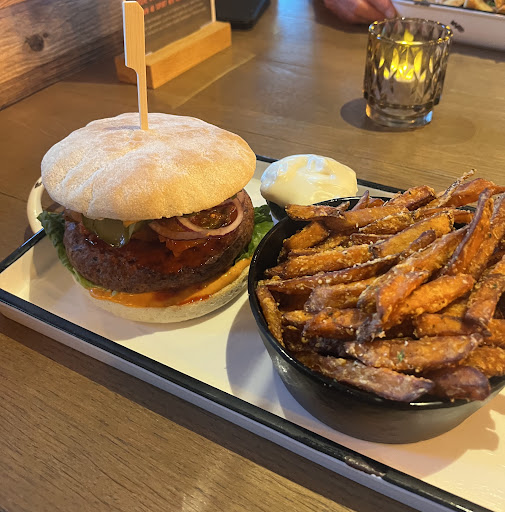 Read moreWow, was für eine Lage. Tolles Ambiente im Oldenburger Hafen und damit sehr zentral. Hier gibt es Burger, Bowls, ein paar Klassiker, Pulled Pork, Desserts und Kuchen. Dazu eine hippe Getränkekarte mit lokalen Ginsorten. Bei uns gab es den Whiskeyburger mit Süsskartoffel Pommes, eine Pommesvariation mit ausgebackenem Gemüse, Pommes mit Pulled Pork und Kartoffelschnee mit Pulled Pork. Der Burger war ok, aber auch eher Ergebnis einer straffen Systemgastro. Eher etwas leidenschaftslos. Alle weiteren Gerichte waren sehr enttäuschend. Wenig Würze und Pepp bei 3 Essen sind kein Zufall. Die Pommesvarianten werden in einer Auflaufform serviert, oben auf mit dem Hauptdarsteller der jeweiligen Variante. Was zunächst gefällig aussieht, endet im Desaster. Es gab logischweise nur matschige Pommes in einer Suppe aus Saucen und Säften. Diese Art des Anrichtens hätte meine Wahl des Gerichts verändert, hätte ich es gewusst, weil es ja nur so enden musste. Ich habe noch nie pulled pork ohne Raucharoma gegessen. Wird das hier nicht im smoker zubereitet?