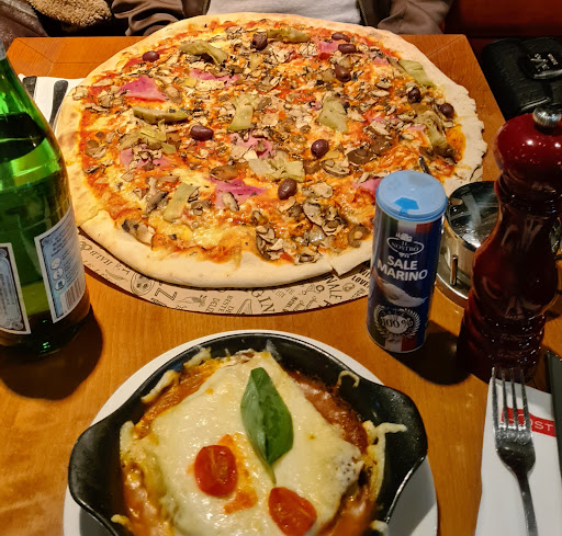 We finally made it here for my boyfriend's birthday. After reading many reviews and hearing that it was sometimes so full that reservations were required, we finally came yesterday. However, it wasn't what we expected. I'd describe it more like a fancy fast food restaurant. The chairs are very uncomfortable and cramped. Italian or Spanish bars can be cramped as well, but they are what they are and have the appropriate atmosphere for it. This place is huge with high ceilings, but it's all so narrow that it feels more like a giant table for everyone. The food took a bit more than 45 minutes to arrive, I don't know if this is the usual time for a Wednesday evening or even longer, although by that time (18:30) it wasn't completely full. The pizza was tasty and had very thin crust. The lasagna bolognese I ordered was also very tasty. I usually don't order bolognese because few places make it right, but here I have to say, I was pleasantly surprised. The carbonara was still not an authentic one, I wonder if many "Italian" restaurants are scared of the original recipe. The staff was really nice and polite at all times. Overall, it was a good experience and the food was tasty, but I don't think I will come back. Maybe for delivery, but not to dine in. It all looks good on Instagram, and teenagers...