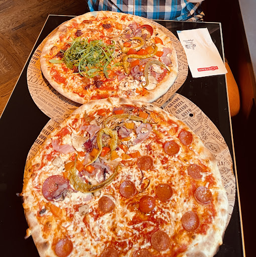 Der Tischzuweiser am Eingang war freundlich, hat uns die Lounge oder die Bar als Wartebereich angeboten. Ein Tisch würde demnächst frei werden. Wir mussten ca 20 min auf einen Tisch warten. War ok, da wir nicht reserviert hatten, und spontan dorthin gefahren sind. Die Wartezeit haben wir uns in der gemütlichen Lounge vertrieben. Bestellung wurde erst am zugewiesenen Tisch aufgenommen und auch da mussten wir nochmal gut 15 Minuten darauf warten. Dann kamen die Getränke und die Vorspeise mit etwas Wartezeit (10 min), Bruschetta mit frischen Tomaten. Das Olivenöl stand am Tisch und war sehr lecker dazu. Mit etwas im Magen viel und die restliche Wartezeit nicht mehr so schwer. Die Vegetarische Pizza war riesig und hat sehr gut geschmeckt. Die Spagetti Carbonara waren ebenfalls sehr schmackhaft, allerdings fehlte der beschriebene Hartkäse. Sehr schade! - Gerade bei diesem Gericht… wurde reklamiert, war aber nunmal zu spät, so habe ich die Spagetti Carbonara ohne Käse gegessen… Zum Schluss haben wir einen Kaffee und Espresso getrunken, hat geschmeckt wie es soll- sehr gut. Zucker musste nachgefordert werden. Warum wird das nicht gleich dazu gestellt? Das Personal dürfte etwas aufmerksamer sein, und die Wartezeiten kürzer. Alles in allem, war es ein schöner Abend und das Essen hat uns gut geschmeckt. Die Musik ist sehr laut, spricht offensichtlich ein sehr junges Publikum an 😏 die Verständigung am Tisch ein wenig problematisch, auch die Bedienung hat bei allem 2x nachgefragt. Lag also nicht an unseren Ohren 😉 Es wurde durchgelüftet, tat der Luft im Raum sehr gut. Ambiente war sehr schön. Rustikal ansprechend. Preis: gehobenere Preisklasse