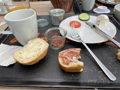 Read moreDen einen Stern vergebe ich für das wirklich schöne Ambiente, wenn man draußen sitzt. Leider war der Service überhaupt nicht zufriedenstellend. Bei der Bestellung bekam nur mein Mann seinen Kaffee und mein Latte musste leider auf sich warten lassen. Wir bekamen dieses kleine Gerät, welches vibriert, wenn das Essen, in diesem Fall unser Frühstück fertig sein sollte. Nach 35 Minuten Wartezeit ist mein Mann zur Bedienung gegangen um nach unserer Bestellung zu fragen, welche immer noch nicht fertig war. Die Bestellung, welche ein kleines Frühstück war (1 Brötchen je 1 Scheibe Käse,Salami+ 1gekochtes Ei) mit Latte kamen in 3 Etappen. Mein gekochtes ei habe ich gar nicht mehr bekommen. Es war nicht sonderlich viel los aber dennoch wirkte der Service hektisch, gestresst und unterbesetzt. Schade. Es hätte ein schöner Start in den Tag werden können. Der Kaffee meines Mannes ist leider kalt geworden während wir auf unser Frühstück gewartet haben. Aber das Ambiente ist wirklich sehr schön und im Laden kann man tolle...