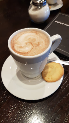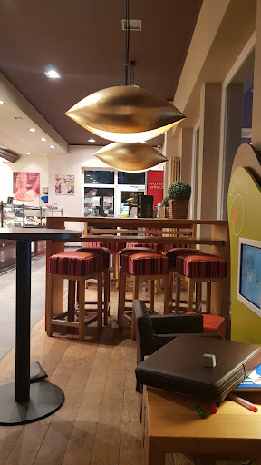 Bäckerei kann ich empfehlen, u.a. aus folgenden Gründen (speziell für Familien): Ein zusätzlichen Stern gibt es für die Kinder-Spieleecke, die Kinder waren unterhalten und somit können Eltern mal auch für sich sein und den Kaffee genießen. Eine Anregung für jedes Café (bzw.Bäckerei) oder Gastronom, scheint bei dieser Bäckerei-Kette üblich zu sein und in mehreren Filiale so vorgefunden. Gut schmeckende Backwaren wie z.B. Bienenstich mit einer Puddingcreme, Käsekuchen aber auch div. Streuselkuchen können überzeugen und dem Junior hat der Schoko-Muffin (mal wieder) sehr gut geschmeckt. Preislich noch gerade akzeptabel. Gut gemachte Kaffeespezialitäten, Preislich aber größtenteils hoch oder zu hoch (z.B. großer Cappuccino 4,60€ ?!) vor allem da es nicht wie von einem Barista-Italiener gemacht wird. Bei einem echten und hochwertigen Barista kostet in Köln oder Düsseldorf ein Cappucino zwischen 2,30€ und 3,30€. Hygiene sehr gut, Tische sauber, Toiletten waren gereinigt.