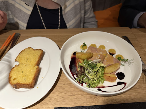Read moreDer Umgang mit einer Art Krisensituation, der Feueralarm schallte 60 Minuten sehr laut und durchgängig, wirkte wenig professionell. Die Gäste, die sich entschieden, auf die Terrasse zu gehen, trugen Essen und Getränke selbst nach draußen und wieder hinein und mussten sich selbst um Besteck und Servietten für draußen kümmern. Manche Gäste trugen ganze Getränketabletts mit hochstiligen Gläsern und Flaschen wieder hinein. Es gab keine klare Kommunikation. Draußen dauerte es sehr lange, bis die wartenden Gäste gefragt wurden, ob sie etwas trinken oder essen wollten. Gefragt nach Decken kam zunächst die Antwort, man habe schon alles weggeschlossen, weil man in der nächsten Woche ja Urlaub habe. Erst nach 55 Minuten entschloss man sich, vielleicht doch nach Decken zu schauen. Im Nachgang wurde netterweise auf das Haus ein Getränk ausgegeben. Das Glas wurde mit einem Gruß aus dem Haus einfach auf den Tisch gestellt. Erst auf Nachfrage war klar, dass es sich um Alkohol handelte. Eine Altenative gab es nur auf Nachfrage. Natürlich war dies eine Sondersituation. Dennoch denke ich, dass ein so hochwertiges Restaurant eine Art grundsätzlichen Plan haben sollte, wie mit schwierigen Situationen umgegangen werden muss. Dazu gehören basics wie: ich biete den Gästen von mir aus an, dass sie sich draußen einen Platz suchen und Essen und Getränke herausgebracht werden. Auch verstehe ich, dass es ärgerlich ist, wenn bereits verpackte Decken wieder herausgeholt werden müssen. Dennoch wäre dies als sofortiges Angebot angemessen gewesen. Auch die "Runde aufs Haus" war sehr nett, angemessener wäre jedoch ein persönliches von Tisch zu Tisch Gehen mit einem direkten Angebot auch an alkoholfreien Varianten gewesen. In einem weniger stilvollen Restaurant hätte ich diesen hohen Anspruch nicht. Im Meshi und in ähnlich hochwertigen Häusern schon. Daher gebe ich für den im Normalfall guten Service nur...