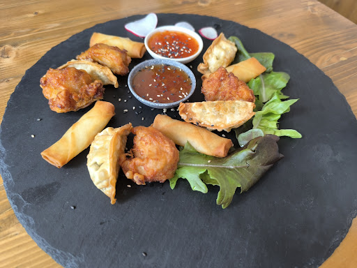 Read moreSuper lecker, super fair, und super freundlich! Wir waren spontan, haben um halb sechs angerufen und einen Tisch für 2 reserviert. Der Herr am Telefon war super freundlich, gleich auf du und du, was mir schon super gefallen hat. Wir hatten 2 mango Lassis, die Platte "oslo" die uns auch als preis- leistungssieger wärmstens empfohlen wurde. Eine kleine umbestellung an der platte und die enoki pilz futomaki noch dazubestellt und wir waren glücklich. Das Essen kam frisch zubereitet, schön angerichtet. Nachdem wir alles aufgegessen hatten, fragte ich freundlich, ob es möglich wäre zwei espresso zu bekommen. Dies wurde zwar verneint, allerdings gleich ein alternatives Dessert angeboten. Gbackenes Eis. Dies kam dann auch recht fix. Mit dem jungen Mann, der den Service gemacht hat, haben wir uns super verstanden. Das Ambiente war schön, und ich hätte fast 15 Minuten auf der Toilette verbracht, weil ich die mit Manga Seiten tapeziert Wand gesehen, und angefangen habe zu lesen.