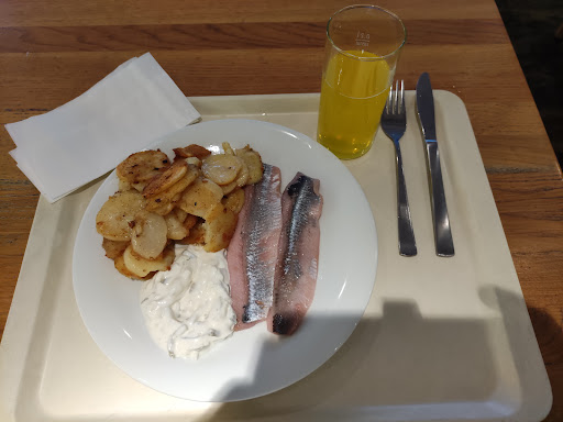 It may not be the thing for everyone but I really like the marinated fish sandwiches in these places. I grew up just outside of Oldenburg in the 1950s and I remember waiting at the side of the road for the pickled herring cart to come by, it was horse drawn and had barrels of various types of pickled fish, that you could buy. My favourite was the Herring Roll-Mops, which is basically a flat piece of pickled Herring rolled up and held together with toothpicks. I have never gotten tired...