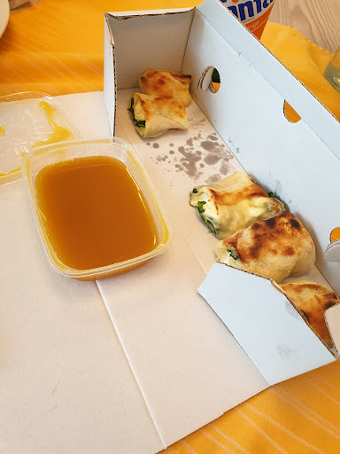 Nach anfänglicher Enttäuschung darüber dass dieser Ort eher aussieht wie ein Imbiss und nicht wie eine Pizzeria haben wir uns entschlossen einfach etwas zum Mitnehmen zu bestellen (siehe Bild). Naturgemäß habe ich sehr wenig erwartet und wurde sehr überrascht. Nicht nur das der Besitzer (?) sehr nett war und wir voll in seine Vorbereitungen reingeplatzt sind (ca 11 Uhr) er hat auch zügig alles fertig gemacht und den Honig-Senf-Dip selbst schnell angerührt vermutlich mit Dijon-Senf, was mich zunächst wunderte aber geschmacklich einfach hervorragend war. Überhaupt scheint dort viel selbstgemacht zu sein. Die Pizza war grandios, knuspriger dünner Boden und frischer Belag. Das Fleisch bei der Dönerpizza war zwar Naturgemäß etwas trockener aber bei weitem nicht so wie andere Buden das hinbekommen. Das Vegane Knoblauchbrot war ebenfalls frisch selbstgemacht. Um das ganze abzurunden gab es eine Menage mit frischen Knoblauchöl, Oregano und Chilliflocken.