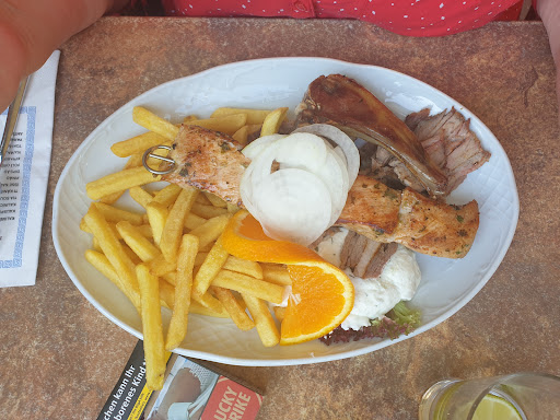 Read moreEinfach super. Wir waren mehr als begeistert. Wir wurden freundlich empfangen und prompt bedient. Vorspeise Tzatziki mit Brot. Der Tzatziki super lecker das Brot in Ordnung. Hauptgang einmal Bifteki und einmal Rehakles Teller. Bifteki mit Krautsalat und Pommes. Der Krautsalat war Bombe. Nicht zu sauer nicht zu süß, nicht zu hart nicht zu weich. Top! Die Pommes perfekt frittiert und gesalzen. Das Bifteki leicht am Garpunkt vorbei. Die Ränder waren noch sehr hell und der Kern noch nicht voll durchgegart. Geschmacklich war es dennoch sehr lecker. Der Rehaklesteller bestand aus 1x Hacksteak 1x Schweinemedaillon 1x Rindersteak und 2 Lammkoteletts mit Pommes und Tomaten- Gurkensalat. Der Salat war in mundgerechte Stücke geschnitten und mit einer sehr leckeren Vinaigrette angemacht. Die Pommes wie auch bei dem anderen Gericht nahezu perfekt. Das Hacksteak war saftig, voll auf dem Punkt und perfekt gewürzt. Das Schweinemedaillon war saftig und ausreichend gewürzt. Das kleine Steak war medium im Kern am Rand Well Done. Ein wenig Ruhezeit hat gefehlt, aber auch hier sehr gut gewürzt mit buntem Pfeffer. Die 2 Lammkoteletts waren gut, aber nicht von hervorragender Qualität. Ein Deichlamm habe ich hier auch nicht erwartet. Geschmacklich aber auch hier sehr lecker. Preislich und vom Service vergebe ich volle 5 Sterne Für das Essen 4 von 5 Sternen. Im Großen und ganzen ein sehr gutes Lokal mit...