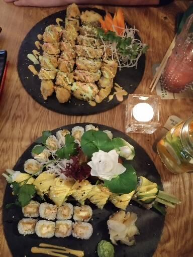 Read moreAn sich ein schönes Restaurant. Das Sushi schmeckt gut und der Service ist sehr nett :) Wir waren an einem Freitag Abend da, dadurch war es leider recht voll und wir hatten, nach kurzer Wartezeit, einen Tisch am Inneneingang an der Warteecke, wodurch es leider recht unruhig war. Auch die Akustik in der Ecke wo wir saßen, war leider recht laut. Ein bisschen Schallschutz wäre evtl vorteilhaft. Am Essen ist aber absolut nichts auszusetzen, das war grundsolide :) Schön wäre es, wenn man nicht diese Holzstäbchen bekommen würde, die es normalerweise für to go gibt. Diese splittern leider öfter und es wirkt dadurch leider nicht mehr so edel. Auch die Plastikblumen Deko ist an sich eine nette Idee, man könnte aber vielleicht mit essbaren Blüten oder anderem arbeiten, um Plastik zu vermeiden. Was mich noch etwas gestört hat, ist, dass man für die Toilette erstmal nach einem Schlüssel fragen muss (was für einige Menschen sicher arg unangenehm ist) und es nur einen Schlüssel für alle Toiletten gibt, für die man zudem erst einmal quer durch ein Treppenhaus außerhalb vom Restaurant gehen muss. Da sollte man eventuell noch etwas dran ändern. Zumindest vielleicht mehrere Schlüssel bereit stellen oder auch die Gäste am Anfang schon darauf hinweisen. :) aber das Restaurant besteht ja auch noch nicht lange und einiges kann man sicher noch verbessern, alles in Allem ist es aber schön dort und wir werden auch vermutlich nochmal andere...