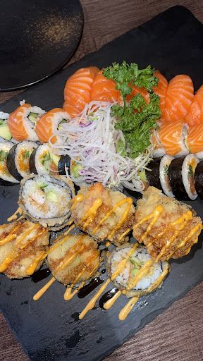 Wir waren hier zum ersten Mal mit drei Personen zum Mittagessen und haben das All-You-Can-Eat (hier "nur" Sushi kein Fingerfood, Nudeln, etc.) gewählt. Wir sind grundsätzlich auch sehr zufrieden. Das Essen war qualitativ hochwertig, frisch, lecker, gut zubereitet und wurde ansprechend präsentiert. Schwierig fanden wir jedoch die Art und Weise des All-You-Can-Eat. Zum einen kann man zwischen einer Suppe oder einem Dessert wählen Punkt. Mehr Infos bekommt man nicht. Hier wäre es sicherlich hilfreich, den Gast darüber zu informieren, welche Desserts oder Suppen denn zur Auswahl stehen. Zum anderen hätten wir eventuell gerne eine Suppe und ein Dessert gewählt. Ebenfalls als etwas unglücklich empfanden wir, dass einem eine Platte mit Sushi gebracht wird, ohne dass man vorher bestimmte Sorten auswählen kann. Man kann zum Beispiel anmerken, dass man gerne weniger Gemüse bekommen möchte, jedoch ist dann unter Umständen trotzdem in jedem Sushi Avocado drin. Sitzt am Tisch nun eine Person die keine Avocado mag, guckt diese blöd aus der Wäsche. Hier sollte man eventuell mal ein bisschen bei der Konkurrenz spicken und sich dort die Vorgehensweise abschauen.(Laufband, Bestellung per IPad, Bestellung per Ankreuzzettel, oder auch ganz einfach per Speisekarte, etc.) Des Weiteren war zu unserer Zeit relativ wenig Kundschaft im Restaurant, sodass wir auf der Sushi Platte immer eher wenig Auswahl hatten und dafür dann von den jeweiligen Sorten eine ganze Rolle. Das empfanden wir ebenfalls als etwas unglücklich, da wir beim All-You-Can-Eat gerne viele verschiedene Speisen probieren und nicht von wenigen Speisen dafür eine ganze Menge.