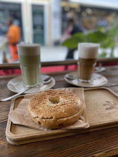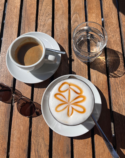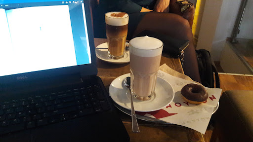 It's pretty nice, but nothing else like starbu... Only place which is ok to sit is when you enter on the right side, cause other place's are a disaster, specially in cold winter months, because they have 2 doors and the wind enters on one site and get out on the other site, so you won't feel comfortable. The personal is like computer, they're polite, but not friendly. The Latte Macciato was ok, nothing special. If you like wired people and people who think being here is cool, for what reason ever, than go there and have fun. If you like to enjoy your coffee, absolutely wrong place! To much movement, to loud, to cold, so...