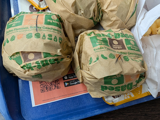 Mein Sohn hat ein Kids Menü bestellt. Den Burger wollte er Plain, leider mussten wir darauf hinweisen das "Plain" und "plant based" ein Unterschied ist. Ich bestellte ein crispy chicken Menü, erst auf weitere Anfrage ob das eventuell der Kind des Monats ist( kein Hinweis im Restaurant auf den King des Monats zu finden) wurde dies bejaht und der Preis entsprechend angepasst. Mein zweites kind hat sich auch ein crispy chicken menü bestllt, wieder die gleiche Geschichte: erst nach nochmaligem erwähnen das es der Kind des nonats sein soll wurde der Preis angepasst. Hier wünsche ich mir deutlich mehr Kundenservice!!!!! Das Kids Menü haben wir OHNE die extra Verpackung bestellt. Jedoch stellte die Mitarbeiterin diese mit auf das Tablett um sie mit den Produkten zu befüllen. Nach einem weiteren Hinweis das wir diese NiCHT benötigen kam als Antwort: "Ich muss die jetzt eh wegwerfen,dann können Sie die auch nehmen". Erstens: ich hatte nichts berührt , warum kann man den Karton dann nicht einfach zurück räumen? Zweitens: Konzentration bitte, wenn abbestellt dann abbestellt! Dann hat die Dame doch tatsächlich trotzdem den Burger in den Karton gelegt,ich kann nicht verstehen warum man den dann nicht einfach entsorgt. Kundenservice? Dazu kam das ich das Gefühl hatte ich müsse mich für die Störung entschuldigen, es war nicht viel los und man hatte den Eindruck ein Kunde stört. Generell war die Dame sehr unfreundlich. Sehr schade! Sollte sich das ganze bessern werde ich meine Rezension gerne wieder...