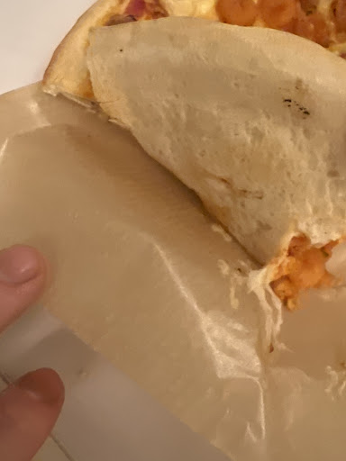 Leider ist die Pizza (26 cm Durchmesser) geschmacklich ganz weit unten anzusiedeln, was auch der Auslöser meiner 1 Sterne Bewertung ist. Sie kommt aus dem Steinofen. Der Boden lässt allerdings den Schluss nahe, dass die Pizza - wie so häufig leider - in einem Blech im Ofen gebacken wurde. Ansonsten ist die Pizza weit entfernt von einer typischen italienischen Pizza (z.B. kein Mozzarella).