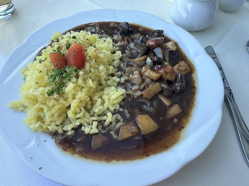 Schöne Lage direkt am See. Etwas nüchterner Wintergarten. Damit hört es aber auch schon auf. Das Essen war allgemein zu stark gewürzt, die Spätzle ein nicht so hochwertiges Fertigprodukt und auch noch schlecht zubereitet. Als ich den Service darauf hingewiesen habe, war die Ausrede, dass dafür keine Zeit wäre wegen Personalmangel. Da muss ich sagen, muss man halt die Menükarte stark reduzieren beziehungsweise darf keine 22,50 für ein Hirsch Gulasch, das undefinierbare knusprige Anteile hatte. Zumal es auch gute frische Nudelteigwaren, als...