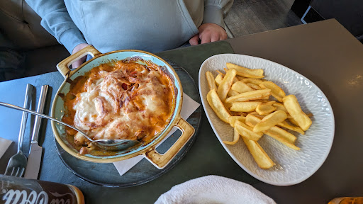 Read moreEtwas Positives zuerst: Diese Küche ist in der Lage, sehr viele Leute in atemberaubender Zeit mit Essen zu versorgen. Das Ambiente ist sehr modern und einladend. Leider war ich (abgesehen vom wirklich guten Dessert) bei diesem Besuch von der Qualität des Essens, gerade im Verhältnis zu den Preisen, nicht ganz überzeugt. Ich persönlich hatte nicht den Eindruck, dass hier irgendwas frisch zubereitet wird (was die Geschwindigkeit erklären würde). Die Santorinikartoffeln (letzlich nur ein normales Kartoffelgratin, überbacken mit einer Art Scheiblettenkäse) hatte ich mir wesentlich spektakulärer vorgestellt, das Bifteki hätte ruhig mehr Schafskäse enthalten dürfen (ich habe nur Spuren davon in der Füllung vorgefunden). Etwas enttäuscht war ich auch, dass selbst im dazu servierten Salat nichtmal eine einzige Olive enthalten war. Mir war die griechische Komponente somit einfach nicht ausgeprägt genug. Natürlich habe ich herumprobiert: Die Rosmarinkartoffeln vom Teller meiner Frau waren ganz und gar nicht lecker (wirkten regelrecht alt), die Knoblauchkartoffeln dagegen überraschend gut. Wäre mein Essen auch nur halb so geschmackvoll gewesen, hätte ich hier nicht viel auszusetzen. Das Dessert möchte ich an dieser Stelle gern positiv hervorheben: Sowohl die Panna Cotta als auch das Galaktoboureko sind sehr empfehlenswert.