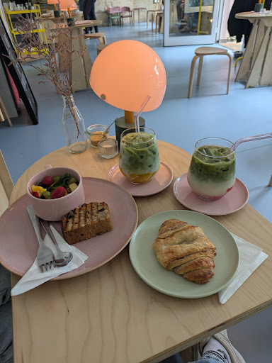 Read moreOverpriced модное кафе для любителей сфотографировать матчу и выложить в инстаграм. Интерьер очень приятный. Расположение просто отличное. В солнечный день тут полно народу. Приятный, улыбчивый персонал! Еда не запомнилась. Mediocre матча, но клубничное пюре было вкусным. Franzbrötchen был не самым вкусным. Советую сделать ремонт в ванной комнате и починить там замок. The funny thing is я скорее всего приду сюда еще раз. Кулинарных шедевров тут не ждите, но если вы ищите место для people watching, чтения книги или встречи с друзьями - смело берите чашку кофе и...