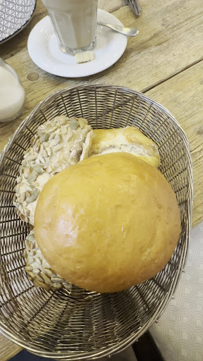 Es handelt sich um ein größeres Café auf zwei Etagen, es war sehr gut besucht als wir gegen 10 Uhr dort ankamen. Wir haben zuerst oben nach einem Platz gesucht, doch haben wir uns dort nicht so wohl gefühlt. Der große Raum wirkte ungemütlich, dunkel und altmodisch auf uns. Drum begaben wir uns wieder nach unten, zu unserem Glück wurde dort gerade ein Platz frei. Unten ist es zwar wuseliger und lauter, aber dennoch ist die Atmosphäre locker, belebt, modern und gemütlich.
