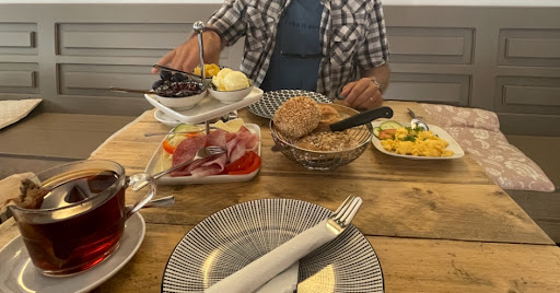 The setting is lovely. The only reason for 4 stars was that the service seemed rushed and could have been friendlier. When ordering we had asked for oat milk as well as cow milk, neither was served with the hot drinks so we asked again and only received oak milk. When I got up to the counter to ask for cow’s milk and salt and pepper I got a curt comment and it felt like I was asking for the impossible. Sorry but tea with oat milk is not for me. Also we’re only given pepper and no salt but didn’t want to cause further trouble.