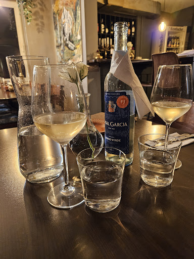 Read moreHaben am Samstag Nachmittag spontan entschlossen, abends essen zu gehen. Reservierung zu 19:00 Uhr für 2 Personen war glücklicherweise möglich. Das Ambiente ist relativ einfach und rustikal. Mir hat gut gefallen, dass die Gläser dennoch fein gewesen sind... dünnwandige Wasser- und Weingläser und eine schöne Karaffe. Ich mag es nicht, wenn man beim Trinken soviel Geschirr im Mund hat. Wir haben eine Auswahl an Tapas gegessen, die alle hervorragend gewesen sind und zügig und freundlich serviert wurden. Dazu eine Karaffe Wasser und eine Flasche Wein, abschließend für jeden noch ein Dessert (köstlich!) und ein Glas Wein. Es hat uns sehr gut gefallen, alles hat wunderbar geschmeckt und wir werden bestimmt noch mal wiederkommen. Allerdings ist Essen gehen preislich mittlerweile kein wirkliches Vergnügen mehr... ohne Trinkgeld haben wir 104,-€ bezahlt -allein die Flasche Wein hat fast 20,-€ gekostet- obwohl wir, bis auf die Garnelen, eher günstige Tapas wie Oliven, Käse, Schinken, Brot und Pimentos gewählt hatten. So bleibt es, zumindest für uns, eher etwas für besondere Anlässe und findet nicht mehr so häufig wie früher statt. Das ist ausdrücklich kein Vorwurf an die Preisgestaltung des Restaurants, die Inflation betrifft uns schließlich alle. Aber vor 2 Jahren hat man für das gleiche Essen 15,- bis 20,-€ weniger gezahlt. Dennoch; es war sehr schön, der Service war freundlich und aufmerksam und daher: Herzlichen Dank und bis zum...