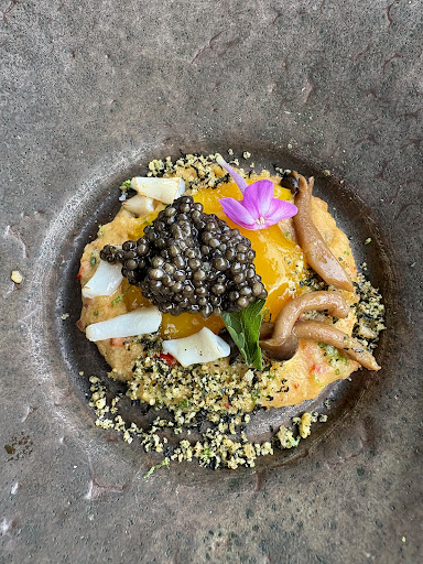 Read moreWenn man Spitzengastronomie bewertet, orientiert man sich an Erfahrungen auf diesem Niveau, die man an anderer Stelle etwa dem Noma in Kopenhagen oder Central in Lima machen konnte. Immerhin hat das IKO einen Michelinstern. Insofern gilt die Zahl der hier vergebenen Sterne im Vergleich zu Küchen der gehobenen Gastronomie. Das Ambiente sowohl außen auf der Terrasse als auch im Restaurant ist stimmig. Aber, ein Teil der Tische ist mit an Barhocker erinnernde hohe Stühle ausgestattet. Wenn man die Beine dann nicht recht auf dem Boden abstellen kann, wird das Sitzen bei einem 5 oder 7 Gänge Menü schon etwas anstrengend. Man hat sich ja daran gewöhnt, daß die Tische in der Sternegastronomie nicht mehr unbedingt eine Tischdecke haben. Nur besteht dann auch direkter Kontakt von Händen und Armen mit der in diesem Fall leicht klebrigen Tischplatte. Wahrscheinlich ist diese Adhärenz ein Relikt aus der unsäglichen alkoholischen Desinfektion der Tische während der Coronazeit. Zum Essen: Gewählt wurde zweimal das Fünfgang Menü. Der erste Gang mit Jakobsmuscheln, Kaviar und Tomaten war schmackhaft von der Präsentation her mit wenig Pfiff. Es folgte ein halber gegrillter Salatkopf mit einem kleinen Spiegel einer Bergkäse-Espuma. Da war der Gast schon erstaunt. Das sah ein wenig nach einem Grillfest in der Nachbarschaft aber nicht nach Spitzengastronomie aus. Zum Fischgang gab es Zander auf Spitzkohl. Der Spitzkohl mit dem gerösteten Reis und der darunter versteckten Aprikose war geschmacklich sehr abgerundet und unterstrich gut die Röstaromen des kross aber ein wenig zu lang gebratenen Fisches. Leider war diese Portion sehr klein. Die Speise kam sich am äußeren Rand des großen Tellers ein wenig verlaßen vor. Von diesem Gang hätte man gern etwas mehr gehabt. Es folgte der Fleischgang mit einem Zweierlei vom Lamm mit einem eher winzigen Teil eines Lammfilets und einem von einer Bohnenmus umrandeten kleinen Gullasch. Das Fleisch war von einer hohen Qualität, auf den Punkt gegart und gut abgeschmeckt. Es fehlte jedoch ein wenig ein "Gourmetküchen-Kick". Das erste optische Highlight beim Essen gab es zum Nachtisch mit eingelegten Erdbeeren auf einem Küchlein und u.a. mit einem cremigen Erdbeereis. Zu den Getränken: Die Aperitive zu Beginn waren eine Wucht. Zu den Gerichten wählten wir die dazugehörige Weinbegleitung (einerseits die klassische, aber auch die etwas ausgefallenere). Beide sind zu empfehlen. Bei der Spezielleren sollte man aber ein Freund von sehr trockenen Weinen sein. Der Service: Alle Mitarbeiter waren sehr engagiert und hilfsbereit, auch wenn man sich an das weniger distanzierte DU gewöhnen muss. Preis / Leistung: Wir haben ohne Trinkgeld für den Abend über 460€ bezahlt. Das war gemessen an der Menge und Art der Produkte und der handwerklichen Zubereitung sowie Präsentation (auch im Vergleich zu anderen Restaurants dieser Kategorie)...