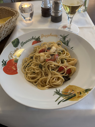Read moreWir waren mit 4 Personen in diesem Restaurant.Alles in allem wurden wir enttäuscht.Zunächst einmal war die Arroganz und gespielte Freundlichkeit der Bedienung, ich nehme an die Inhaberin, nicht zu toppen. Ich war sehr lange nicht mehr in dieser Location und fragte am Anfang ob man noch den Holzofen der Vorgänger hätte. Die Antwort war nein, man würde nur frisch kochen. Hat sich ein bisschen meiner Logik entzogen, weil auch Essen aus einem Ofen frisch sein kann. Ich wollte dann gerne zu meinem Rumpsteak anstatt Salzkartoffeln ein paar Nudel als Beilage haben. Das war dann in diesem so genannten italienischen Restaurant nicht möglich. Der Aufwand wäre an diesem Tag zu hoch dafür. Man konnte mir aber eine Portion Spaget. Carbonara zum vollen Preis dazu verkaufen. Lächerlich. Das Steak war dann anstatt medium, wie bestellt, fast roh. Die Portion Nudeln ließ sich aber genießen. Ich würde diese unfreundliche Person nie wieder besuchen. Dafür gibt es auch zu viele wesentlich bessere Alternativen...