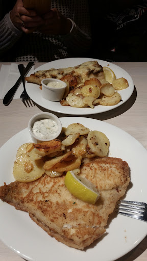 Essen war so ölig/fettig, dass es den Besteckgriff bis zu den Fingern runtergelaufen ist. Ebenfalls, war alles nur lauwarm. Bratkartoffeln zu "versauen" ist schon künstlerisch wertvoll und unglaublich bemerkenswert. Meist Gummiartig, nicht besonders "gebraten". Die Scholle und der Champingionlachs waren genießbar.