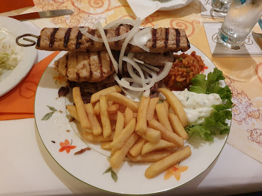 Parkplätze leider kaum vorhanden, mussten erst suchen. Das wurde schnell durch die sehr freundliche Bedienung vergessen. Vorab gab es Knoblauchkräuterbutter mit kleinen Scheiben Baguette und gemischten klassischen Salat. Hauptspeise mit angemessener Portion Reis und Pommes, da üppige Portion Fleisch. Dies war sehr lecker, es gibt nur einen Stern Abzug,weil die Metaxasoße recht enttäuschend war (Beurteilung von 3 Personen):zu sahnig und wenig würzig. Schade,daran messe ich immer eigentlich ein griechisches Restaurant, aber es war wie gesagt aufgrund des guten Fleisches (Gyros, Leber, Bifteki, Suflaki) wett. Sowohl vorab als auch bei Rechnung gab es einen Ouzo oder selbstkreierten Quzo in grün (mochten wir leider nicht, aber nette Idee). Leider noch 1 Sternabzug für die Location selber. Empfehlenswert ist ein Tisch im kleinen Biergarten,denn im Keller, wo die anderen Tische sind, wird nach einiger Zeit die Luft schlecht und trotz der hellen Farben bleibt ein "dumpfes" Gefühl. Aber das muss ja alles nicht auf andere zutreffen, das war nur unsere Einschätzung. Wir würden trotz allem wieder...