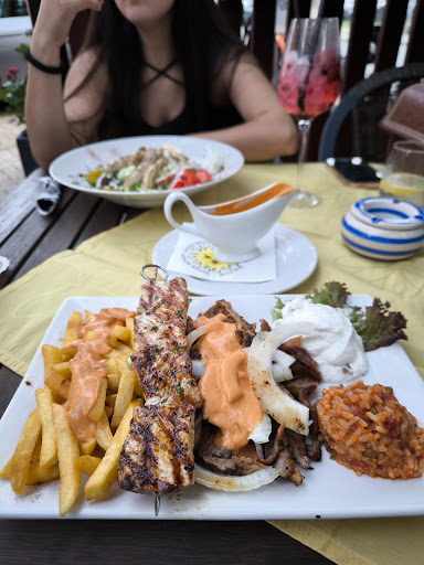 Read moreAuf der Suche nach einem Stammgriechen, der zu Fuß erreichbar ist, haben wir dieses Restaurant getestet. Sonntagabend, offensichtlich sehr viel los, längere Wartezeiten also absolut verständlich. Die Kellner waren freundlich und bemüht, doch leider haben die Getränke ziemlich lange auf sich warten lassen, wohingegen das Essen dann relativ schnell kam. Das Essen an sich war in Ordnung, jedoch nicht so gut wie bei vielen Konkurrenten, vor allem das Gyros schmeckte eher eigenartig. Vorweg gab es weder Brot, noch Salat, noch Ouzo, was man alles normalerweise in jedem griechischen Restaurant bekommt. Das Ambiente ist eigentlich gemütlich, nur leider sehr laut durch die Hauptstraße und den gegenüberliegenden Spielplatz. Insgesamt kein schlechtes Restaurant, aber es gibt bessere Griechen...