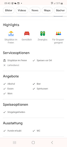 Read moreSehr leckere Speisen, gute Auswahl, auch für Vegetarier und Veganer. Zwischendurch lief mal etwas schief. Ab 16.00 Uhr sollte es lt. Bandansage möglich sein einen Tisch telefonisch zu bestellen. Das stimmte leider nicht, auch um 16.15 Uhr war der Joducus telefonisch nicht erreichbar. Per mail funktionierte die Reservierung dann schnell und problemlos. Hätte ich z.B. meine Mutter gebeten telefonisch einen Tisch zu reservieren, sie wäre auf ganzer Linie gescheitert. Nicht jeder ist online. Das Personal war sehr freundlich , die Speisen waren in angemessener Zeit serviert im wundervollen Biergarten. Auf dem Weg zu den Toiletten stand ich dann im Dunklen. Es gab Bewegungsmelder für das Licht, doch die waren noch ausgeschaltet, obwohl schon einige Gäste im Lokal waren. Man mußte erst einmal nach Licht rufen. Dann sollten wir zum Schluß die Rechnung des Nachbartisches bezahlen. Doof aber so etwas kann vorkommen. Vielleicht ein bißchen mehr Konzentration. Da ist noch Luft nach oben. Alles in allem hat es uns aber gut gefallen und wir kommen gerne wieder. Der Biergarten ist...