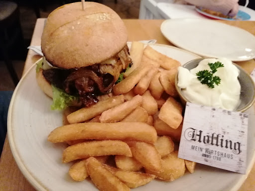 Read moreWir waren hier auf einem Freitag. Ganz Klasse war, dass die 2-G war so konnten wir uns nach Kontrolle ganz frei bewegen. Wir saßen im Fritz-Wolf Gewölbe. Urig, gemütlich,einfach klasse. Wir waren mit Kleinkind da, welchen in einem super Hochstuhl saß, sehr kinderfreundlich ist man hier. Klasse! Überhaupt ist der Service sehr bemüht, wobei bemüht fast das falsche Wort ist, denn hier spürt man, daß der Service noch von Haus aus ganz Prima ist!! Hier muss man sich nicht bemühen, hier ist man noch so. Sehr sehr freundlich, immer mit einem Lächeln auf den Lippen. Obwohl es voll war, spürte man keine Hektik, keinen Stress. Wir wählten vorweg eine Rinderkraftbrühe und eine Wirsingsuppe. Beides reichlich und super abgeschmeckt, einfach lecker. Zudem fürs Auge herrlich. Unsere Hauptspeise von Schnitzel mit Champions in Rahm oder das Holsteinschnitzel mit Lachs über Brauhausgulasch und dem Holling Burger war alles wirklich 1A Lecker, richtig richtig lecker. Ganz tolle Küche, wir kommen sehr gerne wieder. Hier gibt's noch richtig gute deutsche Küche ohne viel Schnick Schnack und reichliche Portionen. Klasse, 5...