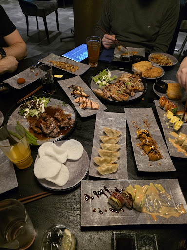 Read moreNur mit ausgewählten Speisen sinnvoll... Vorab sei erwähnt, dass hier das Tablett-Konzept gut gedacht (und ja auch schon hinlänglich bekannt ist), aber leider schlecht gemacht ist. Wir waren dort 15 Minuten vor der Zeit und konnten uns direkt an einen runden Tisch setzen. 6 Personen bekamen einen (1) Tablett. Das hatten wir noch nie und so dauerte das Aussuchen deutlich länger als gewohnt. Dazu kam die Regel, dass nur 3 Gerichte je Person gewählt werden dürfen. Dann kamen einige (leider nicht alle) Gericht sehr schnell und die Portionen waren teilweise sehr groß. Eigentlich unüblich, da man ja hier viele Kleinigkeiten probieren möchte. Günstiger wäre, wie es bei den meisten Mitbewerbern üblich ist, 5 kleine Portionen zu wählen und max. 4 Personen für ein Tablett. Da wir bei jedem Gang Getränke mitgewählt hatten, konnten wir die 15 Minuten Regel umgehen, zumindest wurden die Bestellungen direkt ausgeliefert. Es kamen schon Bestellungen aus der Runde 2, da war die Runde 1 noch nicht vollständig erledigt... Leider war der Service recht schwach, weil selten für Nachfragen erreichbar. Als ich fragte, wass die Dame denn jetzt servierte, sagte sie mir "Da hin" und meinte damit, wo ich dass Essen abstellen sollte, welches sie mir übergab. Eine weitere Nachfrage wurde mit dem Fingerzeig auf die von ihr gewünschte leere Stelle am Tisch abgetan. Auch das Sushi war sehr saucig und weich und einfach schwer im Detail zu erkennen. Ein Kompliment gab es für die Nigiri - groß, ausgefeilt und lecker. Leider fehlten auch bei uns bei fast allen Bestellungen die Sauce (außer beim Hähnchen mit Teryjakisauce - Tip!) und das Fleisch war recht kaubar. Fazit: Bestimmte Speisen waren gut, Service war nix und die Bestellungen kommen unregelmäßig und es fehlten immer wieder Produkte - da gibt es in Osnabrück schon bessere Betriebe, aber vielleicht spielt sich das...
