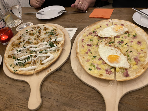 Tried it for the first time today for dinner after spending the day at a nearby lake. The place is cozy, family friendly, plenty of area to seat with family and friends, and the food was delicious. Flammkuchen dough is crispy and thin and the toppings are evenly spread. They are not cheap or stingy when it comes to their toppings. Staffs are nice, friendly, and polite as well. Would definitely come...