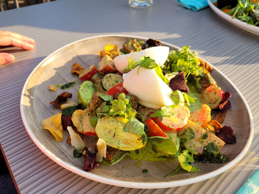 Der Empfang ist richtig klasse und lädt direkt zum wohlfühlen ein. Als wir am Tisch saßen, hatten wir einen Ausblick direkt auf einen großen See mit weißem Sandstrand, welcher von allen Plätzen im Restaurant zu genießen ist. Draußen ist eine sehr gemütliche Terrasse mit einer Bar, wo man hervorragend entspannen und das eine leckere Getränk oder Mahlzeit zu sich nehmen kann. Die Bedienung bis hin zu den Inhabern ist mega entspannen und super drauf. Zum Essen fällt mir tatsächlich nichts ein außer fünf Sterne, weil ohne zu übertreiben der Hammer war! Von der Vorspeise bis hin zum Dessert einfach klasse.