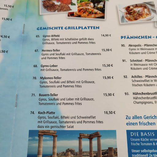 Zu den Speisen: Die Auswahl ist vielseitig und bietet sowohl traditionelle Klassiker als auch einige moderne Interpretationen. Wir hatten die gemischte Vorspeisenplatte, die einfach himmlisch war – frischer Tzatziki, knusprige Saganaki und aromatisches Dolmadakia. Als Hauptgang hatten wir das Gyros – beide Gerichte waren perfekt zubereitet und voller Geschmack.