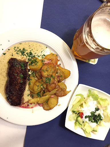 I arrived at Osterade am Harz already in the afternoon, because it was winter time at 5 pm was quite dark, I walked along the typical shopping in the suburbs, then to Waagestrasse street and I found a typical restaurant Ratswaage Germany. entering the door of the restaurant there is a very unique cigarette dispenser of various brands with an average price of 6 euros, the restaurant is quite spacious and there is a bar for those who want to drink alcohol to warm up. a lot of menus on offer I order beef steak but it tastes not okay and I also order salmon steak , woww I did not expect to get a whole salmon that has been cooked well, it feels very good enjoy food accompanied Beer typical Osterade am Harz that taste good, a little sweet and very refreshing, an interesting experience to...
