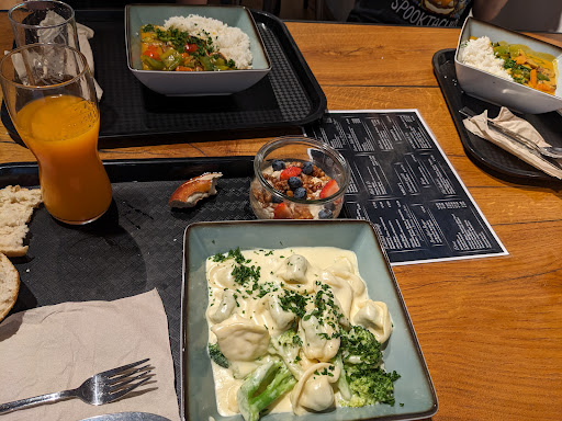 Read moreWhile the restaurant looks good and has vegetarian and vegan (more than just breadsticks and salad) options the prices seem to be pretty random. For scrambled egg from a maximum of one (1) egg with 3 slices of bacon and some bread i paid 7€ which is (even if the bread is REALLY good) very expensive. Oddly enough most of the other prices...