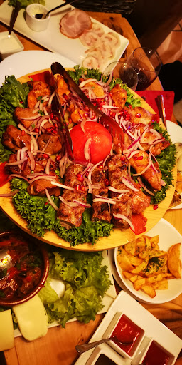 Zur Karte bzw. insbesondere die Preisgestaltung für einen Spiess Schaschlik und 180g zwischen 22€ und 29€ zu nehmen ohne Beilagen grenzt schon an einer Frechheit wir haben uns dann für eine Platte entschieden einfach um es zu testen 600g Fleisch für 70€ ohne Beilagen. Auch hier ist zu erwähnen das wir aus der Lebensmittelbranche kommen und Jahrzehnte lang unser Geld mit der Verkauf von Lebensmitteln verdient haben. Das Fleisch war trocken langweilig gewürzt oder wenn denn nur mässig Landestypisch eingelegt die Präsentation auf eine Platte mit etwas Salat und nicht Marinierten Zwiebeln ist ebenso untypisch und einfach eine Frechheit für soviel Geld. Das ganze isst man dann von den billigsten Glaskeramik-Tellern die man in der Metro kaufen kann und darf dann aber dem Inhaber dabei zuhören wie er seinen Monströsen Deckenschmuck für angebliche 6000€ anpreist das ist sowohl lächerlich als auch absolut unprofessionell , Auf der Toilette die den Eindruck eines billigen Imbisses macht bekommt man dann anstatt vernünftiger Handtücher 3 billige Küchenrollen aus dem Discounter präsentiert.