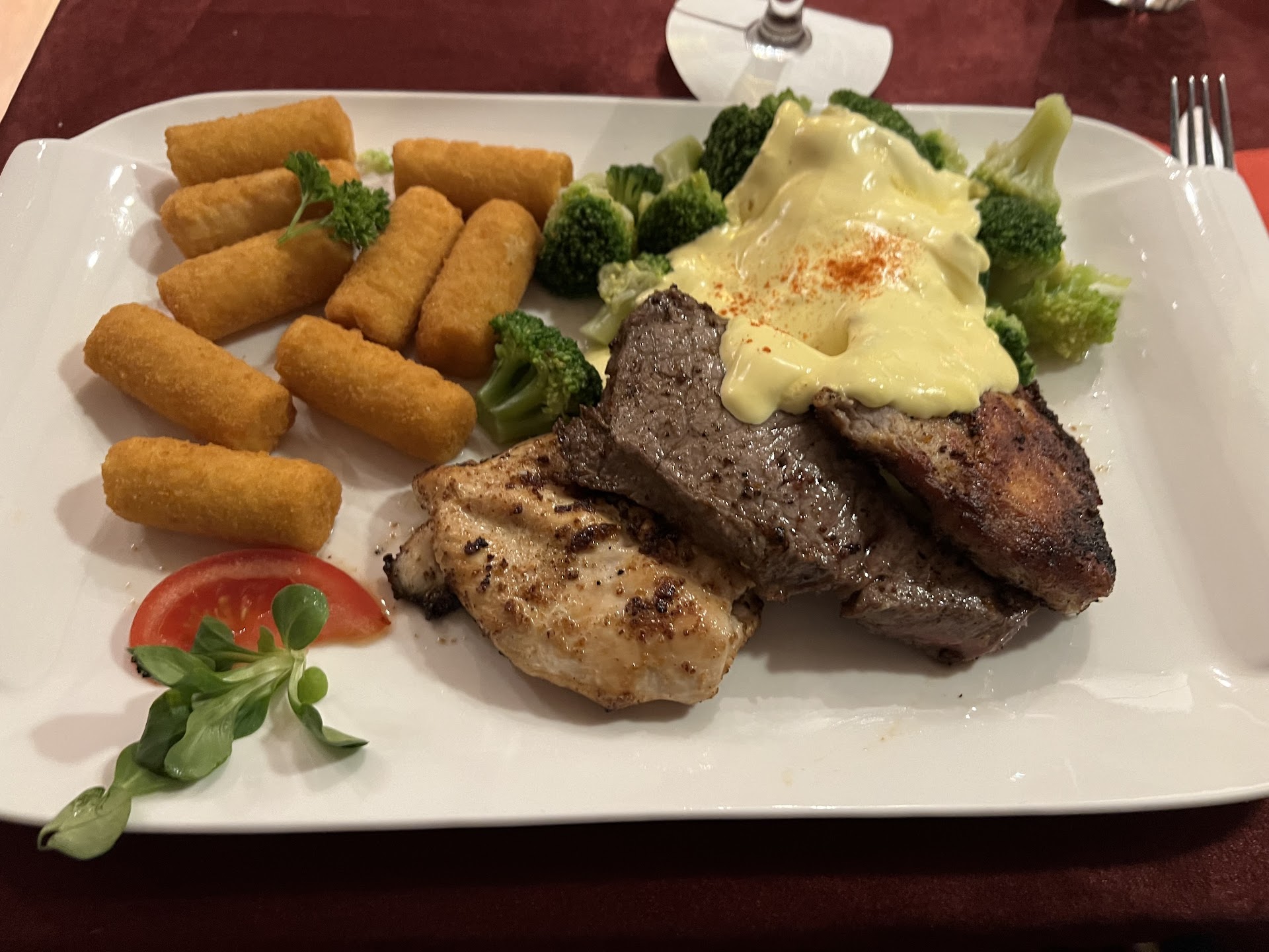 Man wird nett und freundlich empfangen, der Service und der Koch sind ehrlich freundlich und nett, daß merkt man, es war nix aufgesetztes! Gut, Bling-Bling , Goldenes Besteck und Trall-LaLa sucht man hier vergebens. Das wirkt sich natürlich auf's Preisnivau aus, es ist im Verhältnis ziemlich Günstig, besser Gesagt angemessen, was hier geboten wird! Die Marktbegleiter würden die Skala höher setzen, aber bezweifle daß man mehr und besser bekommt!🤷♂️